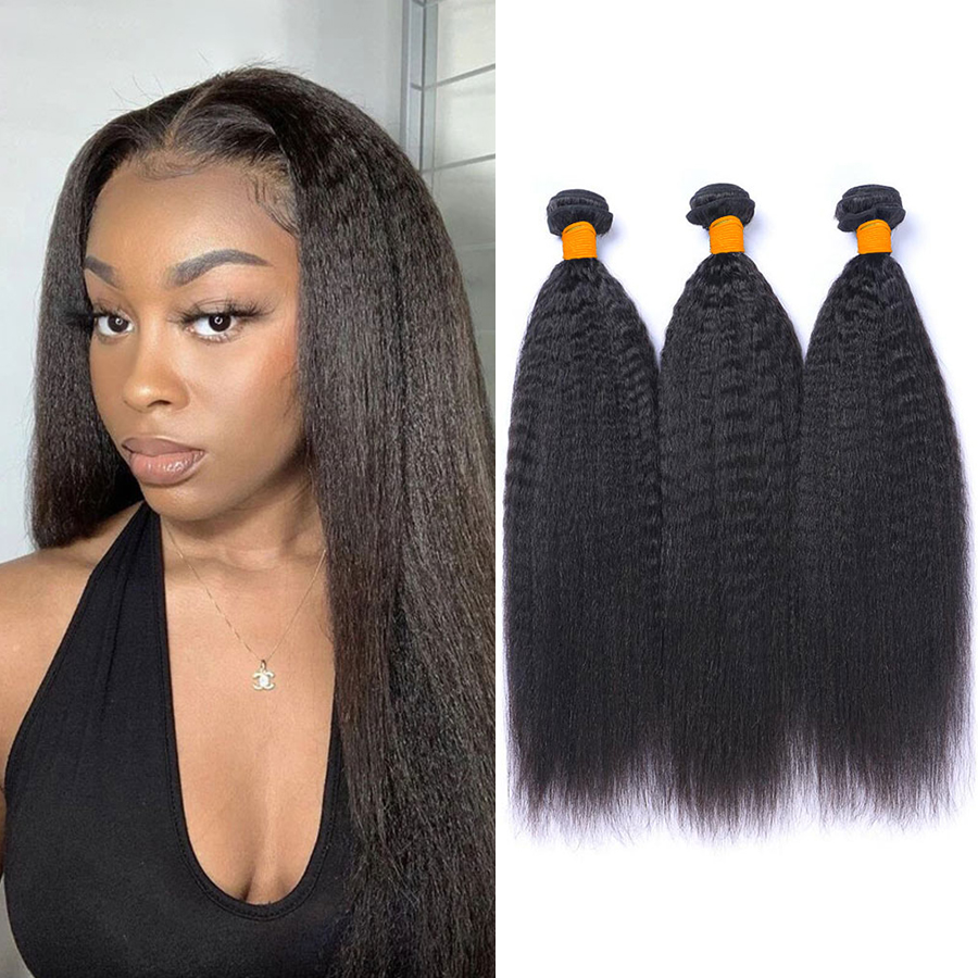 Extensiones de cabello humano liso y rizado Yaki, extensiones de cabello humano virgen sin procesar 100%, Color Natural | |