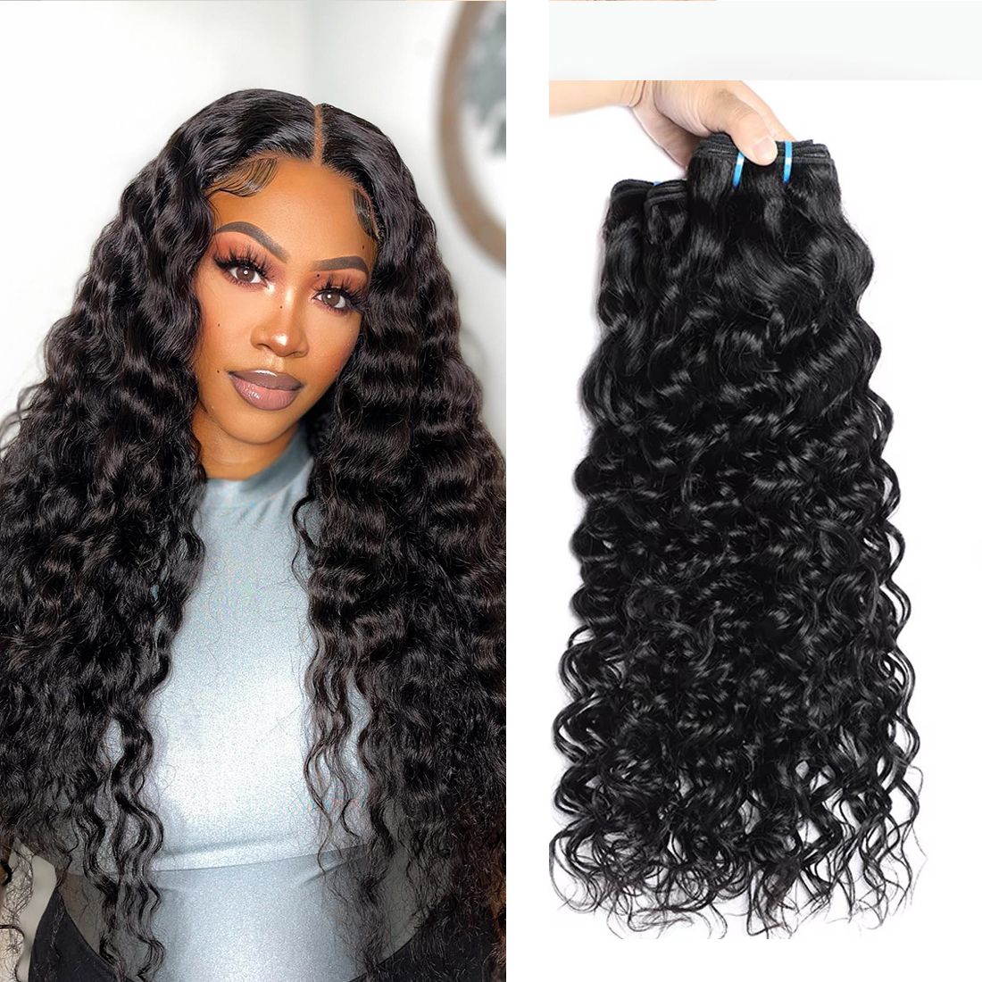 Paquetes de cabello de onda de agua. Puntos de tejido de cabello Remy Hair Bundles. Full 95-100gram por cada paquete, se puede teñir y planchar bien.